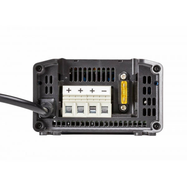 - Sluit de lader aan op uw accu('s) met geschikte accukabels (10mm², niet meegeleverd).